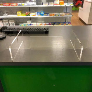 Компанія ТАШУТА виготовляє на власному виробництві захисні екрани для каси, перегородки для аптек, магазинів, ресепшенів, зонування простору в офісах. Розмір, тип конструкції, товщину матеріалу можна адаптувати під конкретний інтер'єр: супермаркет, офіс, клініка...